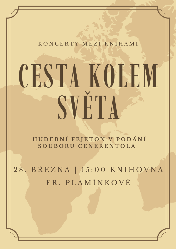 Vydejte se na hudební výpravu napříč kontinenty a kulturami. Co všechno vás může potkat na cestě kolem světa? Odpověď nabídne hudební fejeton komorního souboru Cenerentola, který s lehkostí, nadhledem a humorem propojuje slovo s hudbou. Zazní skladby (nejen) Daniela Hellbacha a další melodie inspirované dálkami a cestováním.